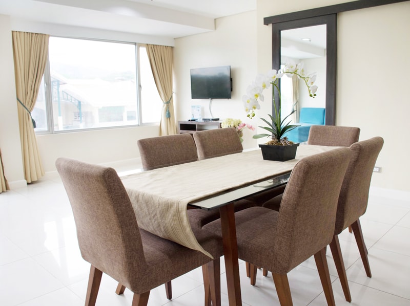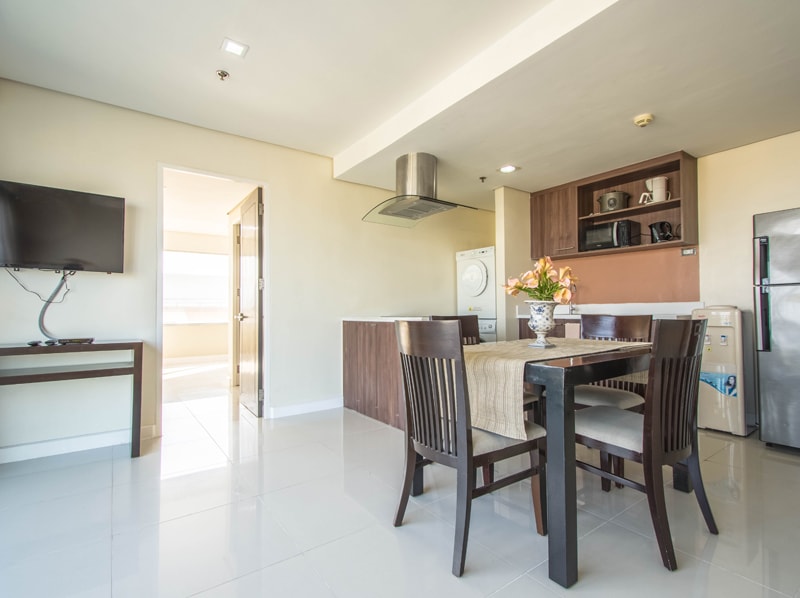 • セブ島のアリシアアパーテルの客室 ツーベッドルームプレミアムのテーブル