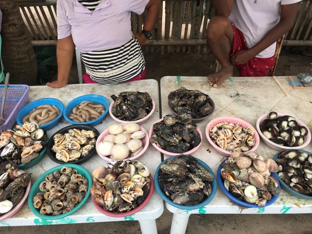食事を持って行かなくても新鮮な魚介類が売っています!